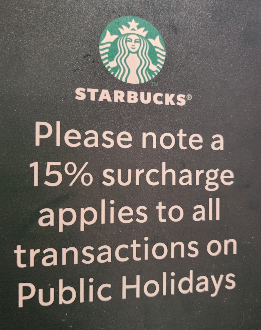 팬데믹 이후에 인건비가 오르면서 기업들의 부담이 증가되었다고 호소하고 있으며 공휴일에는 시급을 더 많이 줘야하는 부담이 있다. 호주에서는 공휴일에 평소보다 직원 시급을 2.5배를 줘야 하는 규정이 있다. 이러한 부담을 고객들에게 전가하여 충당하는 것이다. 처음에는 동네의 1인 사업자나 작은 규모의 식당 정도로 시작했지만 점점 대기업의 프랜차이즈들까지도 할증을 받고 있는 수준이다.